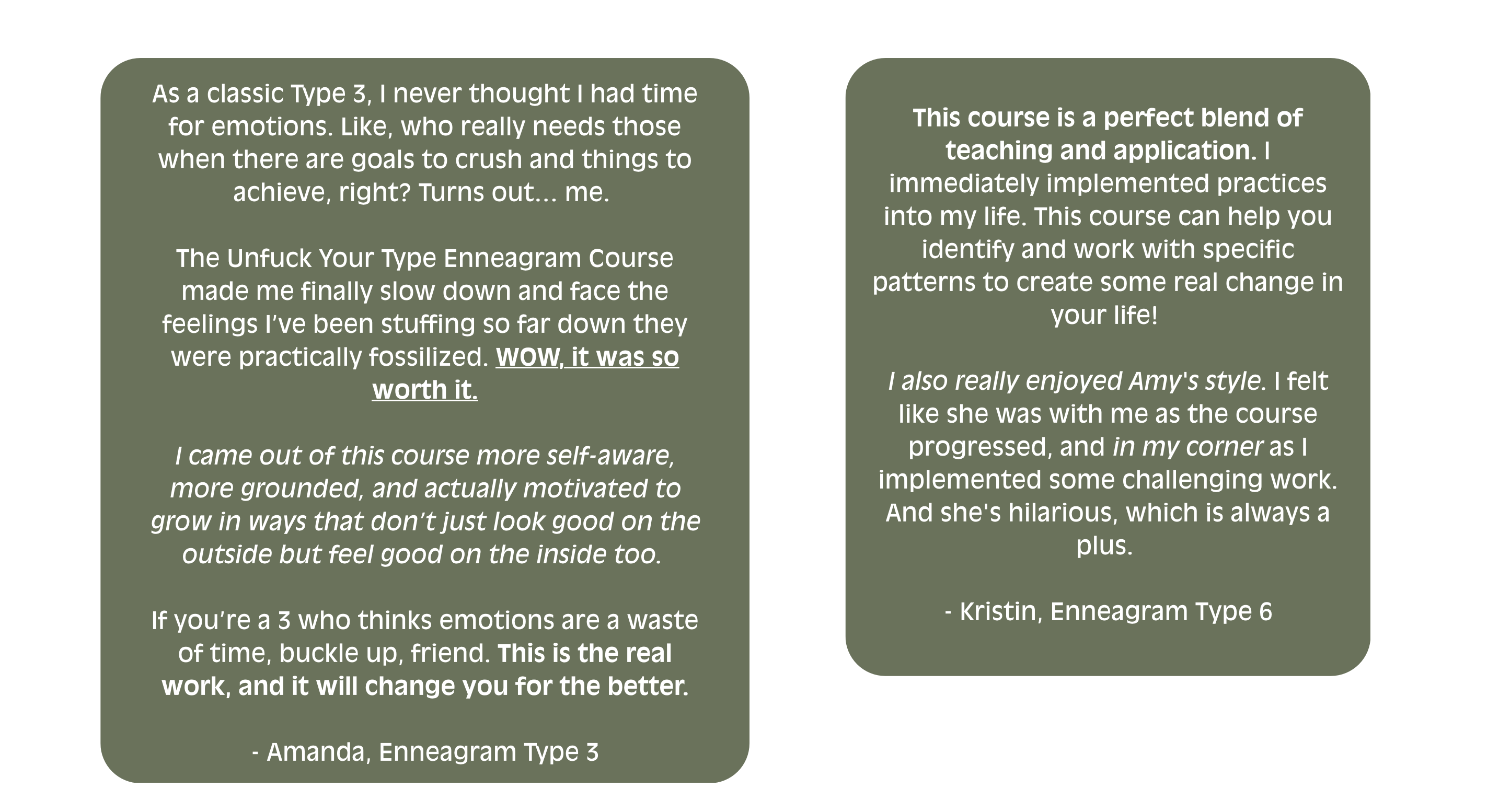 Enough of the shallow courses out there that are full of basic Enneagram stuff you can Google in five seconds. Unf*ck Your Type is Enneagram work like you've never experienced it before.