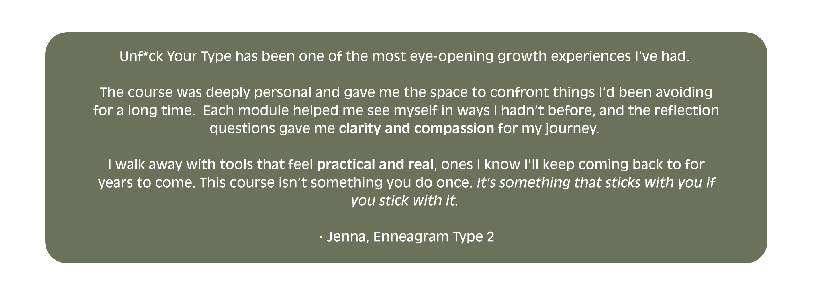 And that is exactly why I built the Unf*ck Your Type Courses. Because you deserve to stop being controlled by patterns you can name but can't change. I built the course I needed, and the one you need, too.